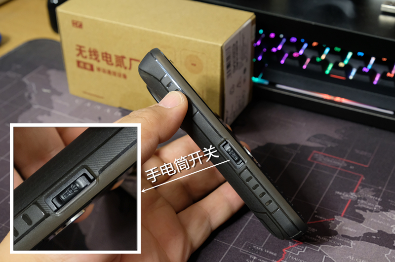 手机左侧设置了一个独立手电筒开关,我觉得这是虎啸手机的第一大亮点,不需要像智能机那样解锁、下拉菜单、点击手电筒开关,直接通过这个侧键就能打开位于手机顶部的手电筒,而且这是真的手电筒,不是调用相机闪光灯,官方参数为100流明,亮度可以秒杀市面上所有智能机,家里停电、走个夜路有它来照亮妥妥的!而且实际使用中我还发现它在不开机的状态下也可以使用,简直太人性化了。
