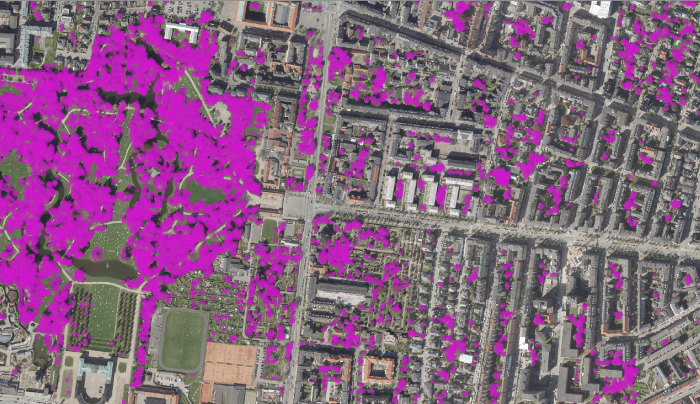 从2016年公开的12.5厘米分辨率的丹麦spring航拍图像数据集中,我们在哥本哈根周围的以下区域计算了3种不同比例的8,838,984个片段的描述符: